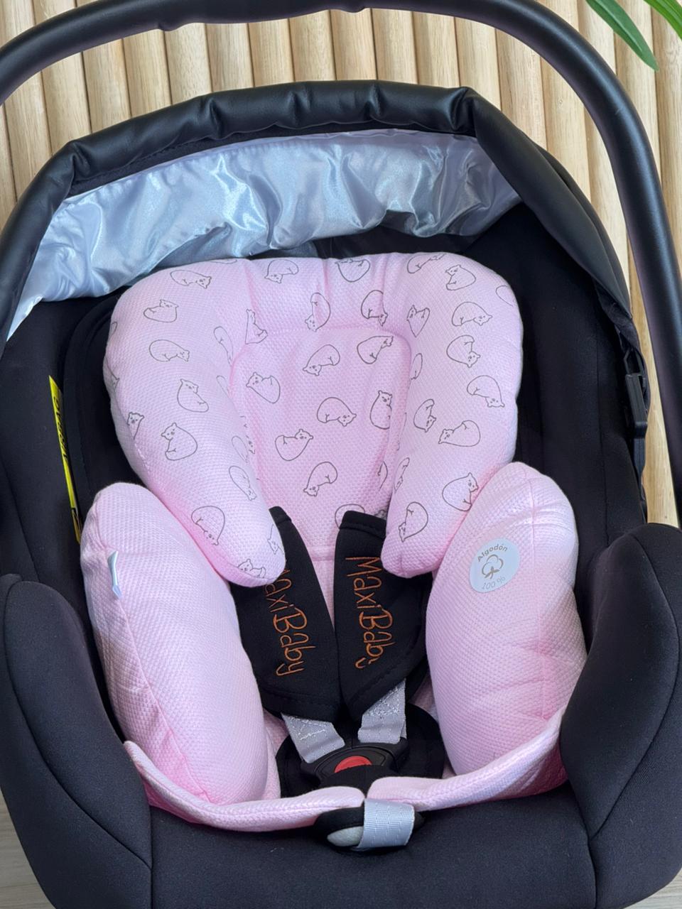 Compuesto por dos piezas, en la parte superior una almohada estabilizadora y en la parte inferior dos cojines que se ajustan al cuerpo del Bebé, manteniéndolo derecho y dándole soporte y firmeza, ideal para coche y silla de auto